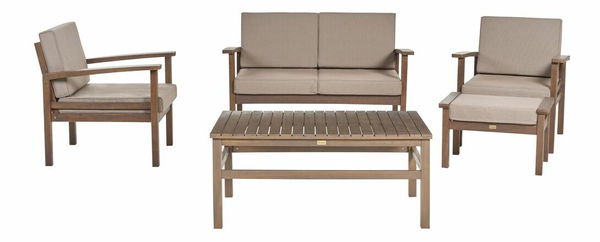 Vytvořte si v zahradě pohodlný koutek k sezení s touto krásnou sedací soupravou, která sestává ze stolku, lavičky, dvou křesel a podnožky. Pevné certifikované akáciové dřevo v tmavém odstínu dodává nábytku výjimečnou odolnost vůči různým povětrnostním podmínkám. Zahradní sada se dodává se sadou pohodlných polštářů, které vám poskytnou absolutní pohodlí během sezení. Souprava v nadčasovém designu zapadne do jakéhokoli vnějšího prostoru a dodá mu výjimečný charakter.