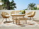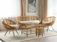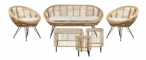 Tato ratanová sedací souprava v boho stylu je dokonalou kombinací nadčasové elegance a funkčnosti. Sestává z 2-místné pohovky, dvou křesel a sady tří konferenčních stolků z kvalitního ratanu doplněného pevnými železnýma nohama, které jsou zárukou odolnosti a stylu. Tato souprava vynikne v jakémkoli prostoru a můžete ji využít v obývacím pokoji i na terase. Souprava nábytku inspirovaná boho stylem dodá jedinečný charakter jakémukoli prostoru.