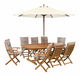 Tato funkční 10dílná sada nábytku se dokonale hodí do každé zahrady inspirované moderním nebo rustikálním stylem. Souprava je vyrobena z kvalitního akáciového dřeva, díky čemuž vám bude sloužit dlouhá léta. Osmimístný jídelní stůl s roztahovací deskou je doplněn slunečníkem, který poskytuje příjemný stín během horkých letních dnů. Každá židle je vybavena područkami a měkkým sedacím polštářem pro ještě větší pohodlí.
