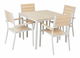 Tato nádherná sada venkovního nábytku se skládá ze stylového stolu a čtyř stohovatelných židlí. Sedadla mají široké opěrky rukou pro optimální pohodlí a ocelový rám s bílým práškovým lakováním, který kontrastuje s vysoce kvalitním syntetickým dřevem použitým ve vrchní části stolu, na sedadlech a opěradlech. K výrobě byl použit ekologický materiál z plastového řeziva, který má veškerou krásu dřeva a zároveň je šetrnější k naší planetě. Celá souprava je navíc odolná vůči UV záření a korozi.