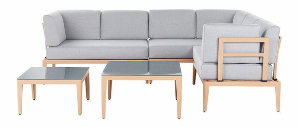 Vytvořte si v zahradě pohodlný prostor k odpočinku s touto nádhernou rohovou soupravou. Její rám je vyroben z hliníku, díky čemuž se překvapivě snadno čistí. oka. Souprava se dodává také se dvěma konferenčními stolky.