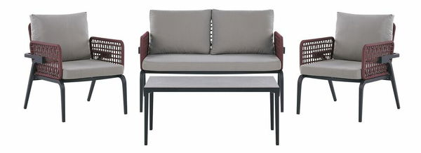Vytvořte si stylový prostor v zahradě s touto elegantní a moderní zahradní soupravou. Sestává z dvoumístné pohovky, dvou křesel a konferenčního stolku. Sedadla mají tlusté polštáře, které poskytují správnou podporu a pohodlí během sezení. Pohovka i křesla jsou vyrobena z kvalitního hliníku a oceli, vyžadují minimální údržbu a jsou odolná proti mírným povětrnostním vlivům. Stolová deska je vyrobena z kamene, ekologického materiálu s dlouhou životností, který dokonale splyne s vaším exteriérem. Díky jednoduchému, ale modernímu designu se souprava hodí do každého interiéru nebo exteriéru.