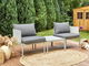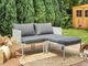 Pokud máte v zahradě nebo na terase málo místa a hledáte vhodný zahradní nábytek, je tato moderní a minimalistická zahradní sedací souprava dokonalou volbou. Dá se změnit na 2-místnou pohovku s konferenčním stolkem nebo s lenoškou, ale lze ji nastavit i tak, že vám poslouží jako 3-místná pohovka. Hrubé polštáře vám poskytnou pohodlí. Soupravu lze díky její konstrukci snadno přeměnit i na odkládací prostor s policemi na polštáře. Je vyrobena z vysoce kvalitního hliníku, který je trvanlivý a odolný vůči povětrnostním vlivům, takže jej nepoškodí ani déšť. S touto praktickou a stylovou soupravou můžete nerušeně odpočívat a užívat si léta.