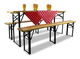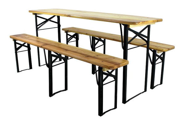 Set zahradního nábytku Woody je ideálním sezením na rodinné oslavy v zahradě, festivaly, dožinky a všechny druhy venkovních akcí. Lavice a stůl jsou vyrobeny z borovicového dřeva, které je tlakově impregnováno a lakováno. Prvky rámu jsou vyrobeny z oceli s práškovou úpravou. Lavice a stůl lze navíc velmi jednoduchým způsobem složit, čímž usnadňuje jejich skladování. Sada nábytku je dřevěný výrobek, který může přirozeně obsahovat škrábance a drobné nedokonalosti. Navíc může obsahovat přirozené variace barevných odstínů. Struktura laku se může na jednotlivých prvcích lišit v lesku, což je dáno strukturou přírodního dřeva.