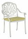 Zkrášlete svůj exteriér pomocí této zahradní sady a užijte si příjemnou atmosféru teplých a slunečných dnů. Souprava je vyrobena z lehkého, ale pevného hliníku a nabízí dostatek místa ke stolování až pro čtyři osoby. Stůl i židle se pyšní ladnými tvary a vzory, které dodají každému prostředí elegantní, vintage atmosféru. Souprava je vybavena čalouněnými polštáři, které zajišťují maximální pocit pohodlí během sezení.
