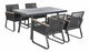 Tato zahradní jídelní souprava dokonale zapadne do jakéhokoli venkovního prostoru. Pevná hliníková konstrukce poskytuje stabilitu a dlouhou životnost soupravy. Ozdobné prvky z plastového dřeva vytváří krásný kontrast v kombinaci s nadčasovým designem sady. Ergonomická opěradla a hrubě čalouněné polštáře zaručují úplné pohodlí během sezení. Umístěte soupravu do zahrady a vytvořte si příjemný venkovní jídelní kout.