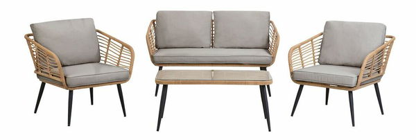 Tato okouzlující sedací souprava, která se skládá z dvoumístné pohovky, dvou samostatných křesel a konferenčního stolku nabízí místo k sezení pro 4 osoby a jakémukoli venkovnímu prostoru dodá nádech rustikálního stylu. Má kvalitní konstrukci z umělého ratanu a pohodlné čalouněné polštáře. Je ideálním společníkem pro trávení slunečných dnů nebo příjemných večerů v kruhu rodiny a přátel.