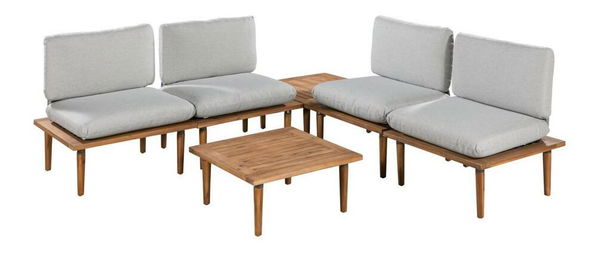 Sníte o relaxu venku? Zařiďte si terasu nebo zahradu se setem a budete mít dokonalý prostor k relaxaci! Zahradní sestava sestává ze 4 modulů a 2 konferenčních stolků, takže je jen na vás, jak budou jednotlivé prvky v aranžmá uspořádány. Rám nábytku je vyroben z extrémně odolného akáciového dřeva odolného vůči poškození a vlhkosti. Kolekci doplňují měkké polštáře ve světle šedém odstínu, poskytující mimořádný komfort při odpočinku. Pomocí soupravy můžete získat vysněný prostor, kde si můžete odpočinout po dlouhém pracovním dni nebo pozvat přátele na aromatickou kávu. Detaily produktu: rozměry modulu - výška: 80 cm, šířka: 75 cm, hloubka: 70 cm, rozměry stolu - výška: 30 cm, šířka: 70 cm, hloubka: 70 cm, pohodlné sedáky a opěrky, rám nábytku ze dřeva akácie, extrémně odolný materiál odolný vůči poškození, poškrábání a vlhkosti, nábytek pro svépomocnou montáž, moderní, loftový design.