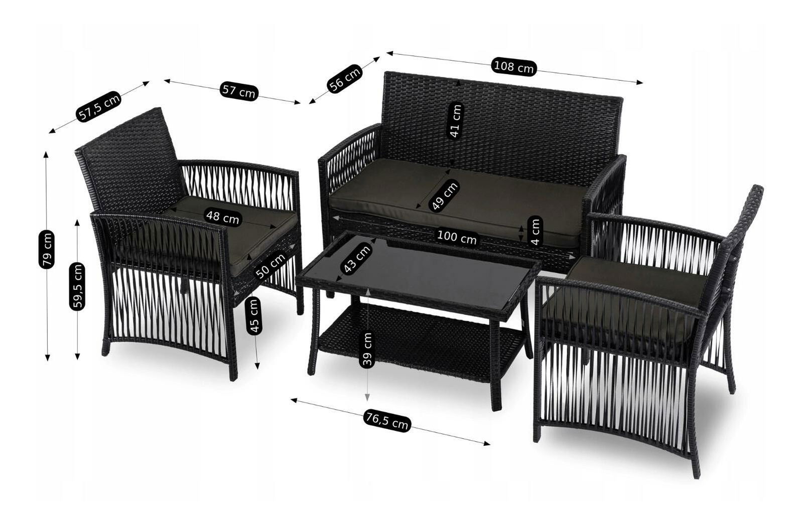 Zahradní set Frutos (černá) (pro 4 osoby)