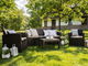 Elegantní zahradní set Hana pro odpočinek nebo posezení s přáteli je vyroben z odolného polyratanu. Tento set je vhodný pro vaši zahradu nebo terasu a odolá slunečnímu záření i větru. Set se skládá z třímístné sedačky, dvou masivních křesel a jednoho stolku. K sedačce a křeslům je dodáván hrubý sedák v kontrastní světle šedé barvě. Povrch stolu imituje dekor dřeva.