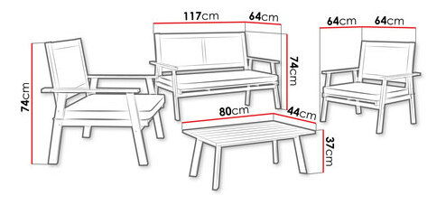 Délka: 117 cm, šířka: 64 cm, výška: 74 cm