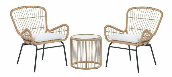 Tato balkonová souprava vyniká svým stylovým a přirozeným vzhledem a nadčasovým designem. Malý kulatý stolek se skleněnou deskou pěkně ladí se 2 židlemi, které jsou doplněny pohodlnými šedými polštáři k sezení. Souprava vyrobená z vysoce kvalitního umělého ratanu a oceli bude dokonalým doplňkem menších venkovních prostor, jako je balkon nebo malá terasa.