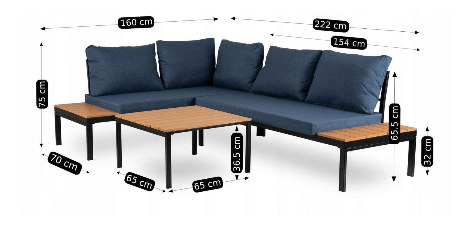 Zahradní set Necasario (námořnická modrá + černá) (pro 4 osoby)