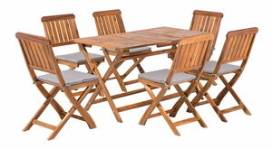 Pokud hledáte způsob, jak přeměnit svou zahradu na dokonalý jídelní kout, tato sada je ideální volbou. Za prostorný stůl se vejde až 6 osob, zatímco lavice, které jsou součástí sestavy, poskytují dostatek místa k sezení. Všechny části jsou vyrobeny z materiálů odolných vůči různým povětrnostním vlivům a vodě. Deska stolu a sedadla jsou vyrobena z vláknitého cementu, zatímco podstavce nábytku jsou z odolného akáciového dřeva. Nábytek se snadno čistí a nevyžaduje časově náročnou údržbu. Tato sestava nejlépe vynikne v moderních či minimalistických prostorách, ale díky svému nadčasovému vzhledu zapadne téměř do jakéhokoli exteriéru.