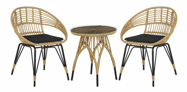 Vytvořte si na balkoně útulné místo k odpočinku díky této bistro soupravě inspirované boho stylem. Jednotlivé kusy jsou vyrobeny z umělého ratanu, který se kromě elegantního vzhledu vyznačuje také tím, že je mimořádně nenáročný na údržbu. Konstrukce je postavena na robustních kovových nohách s práškovým lakováním s ochrannými podložkami, které zabrání poškrábání podlahy. Široká sedadla židlí jsou vybavena voděodolnými sedacími polštáři, takže se můžete pohodlně usadit a vychutnat si šálek kávy ve společnosti vašich blízkých.
