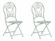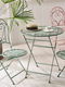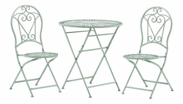 Vneste do svého vnějšího prostoru dokonalou romantickou atmosféru. Tato zelená skládací souprava je ideální volbou pro každý malý balkon nebo terasu, kde poskytne krásné, útulné místo k sezení pro dva. Souprava s práškovým lakováním s opotřebovaným vzhledem, skvěle zapadne do každého prostoru inspirovaného vintage stylem. Přidejte pár květináčů s rostlinami a vychutnejte si příjemnou atmosféru při ranním šálku kávy.