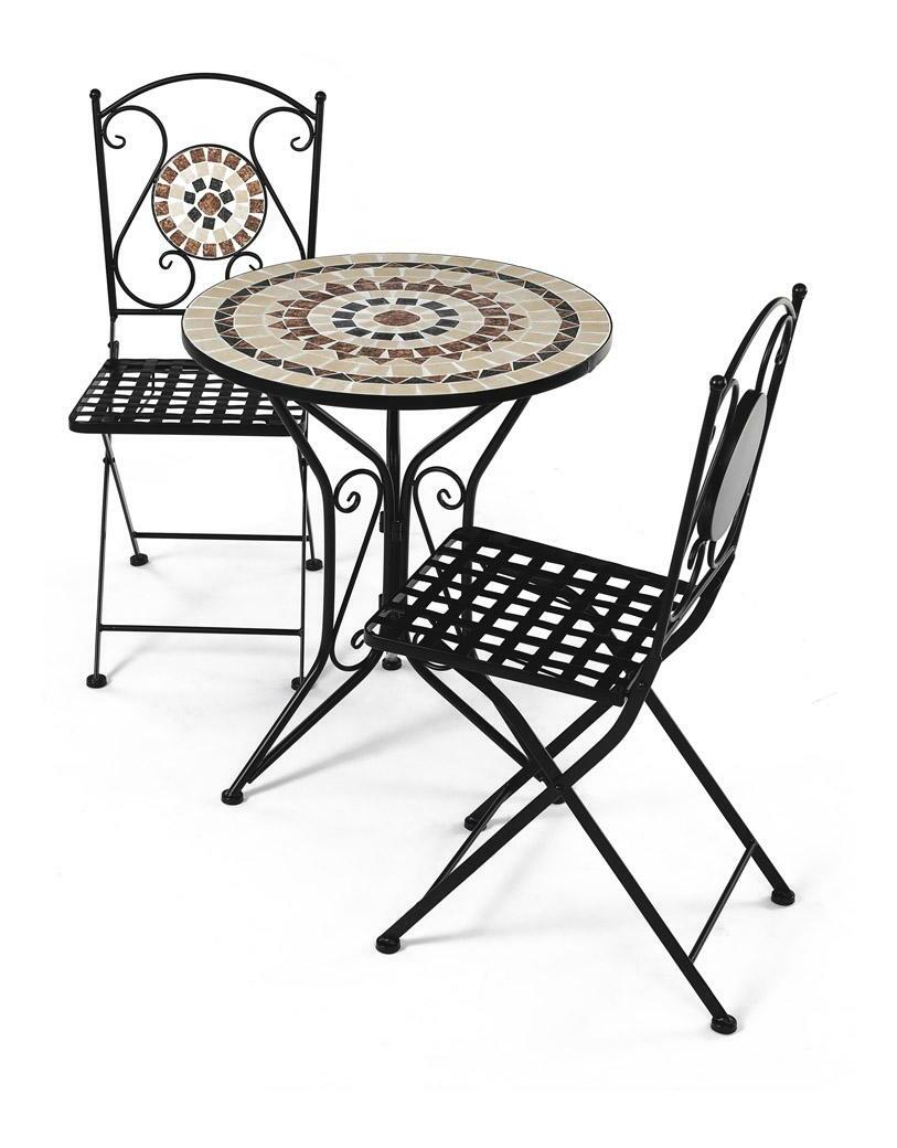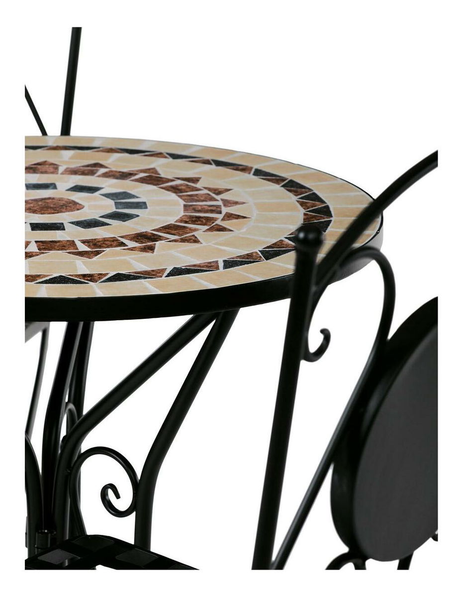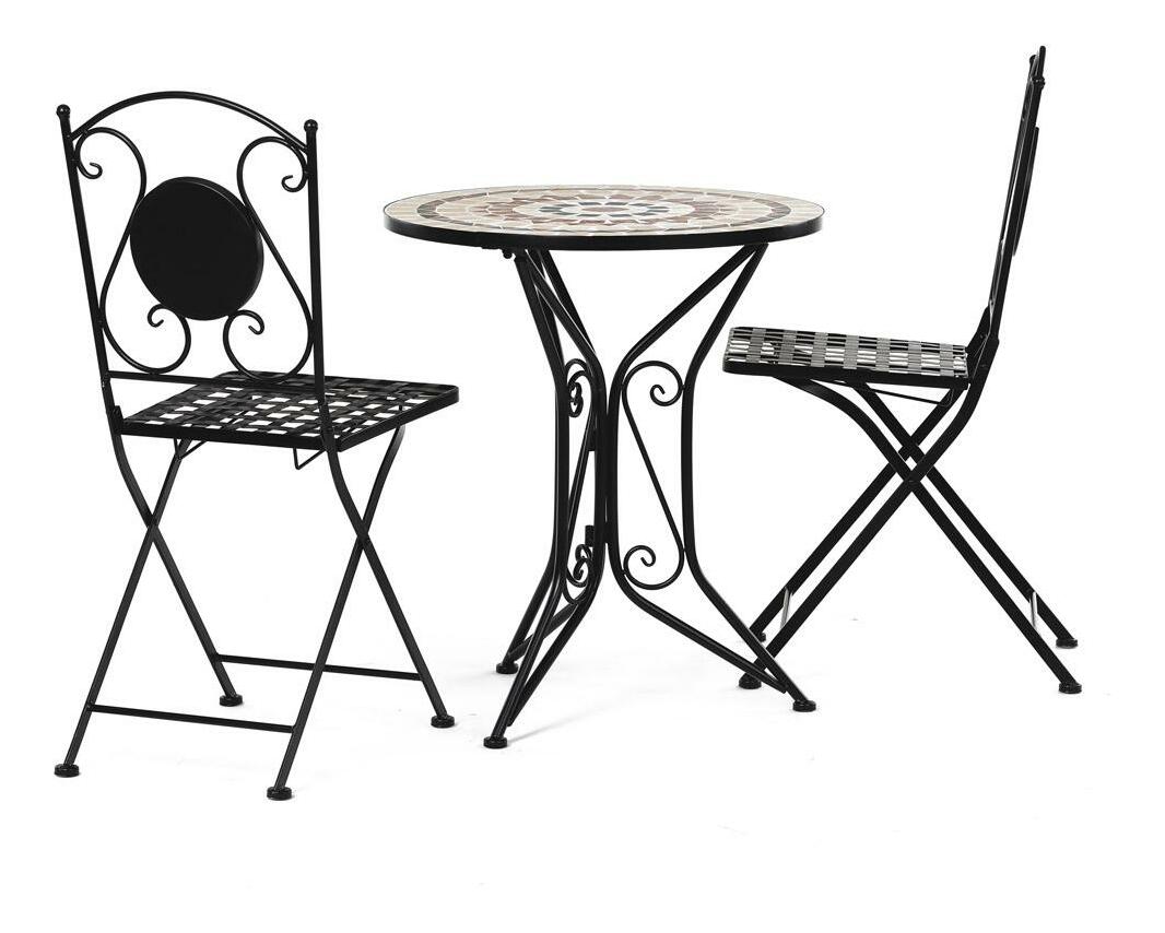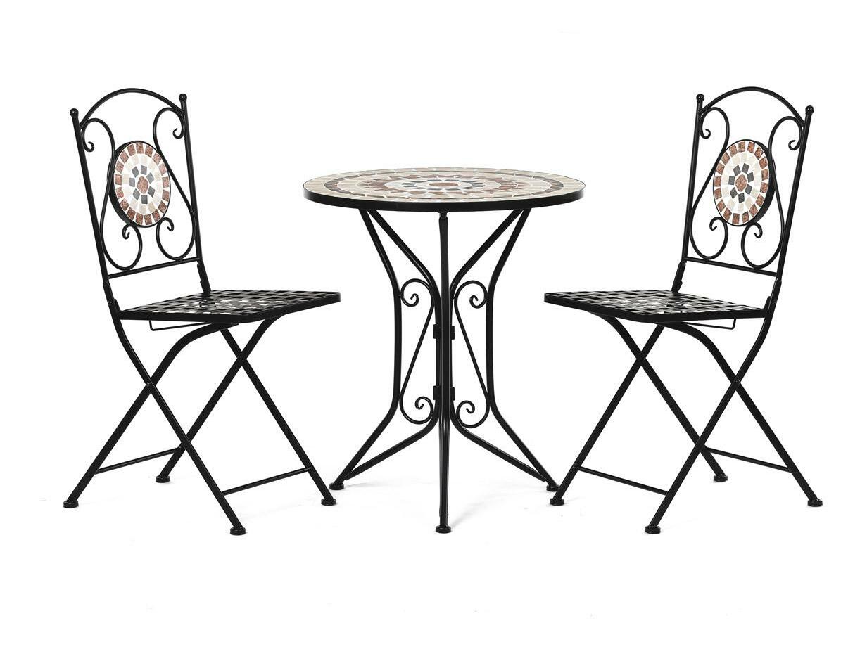 ZobrazitElegantní zahradní set je ideální volbou pro váš venkovní prostor. Tento set obsahuje stylový kulatý stolek s kamennou mozaikou a dvě skládací židle, které se snadno uskladní. Černý kovový rám v kombinaci s provensálským designem přináší do vaší zahrady nebo na terasu nádech elegance a útulnosti. Židle i stolek jsou vyrobeny z odolného kovu, což zajišťuje dlouhou životnost a stabilitu. Tento zahradní nábytek je perfektním doplňkem pro pohodové chvíle strávené venku.