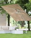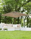 Tento velký zahradní slunečník se může pochlubit čistým, minimalistickým designem, který se hodí do jakékoli venkovní oddechové zóny. Je vybaven ocelovou tyčí pro mimořádnou stabilitu a polyesterovou clonou odolnou vůči UV záření. Klikový mechanismus zajišťuje snadné otevírání a zavírání. Tento slunečník je navíc konzolový, takže jej budete moci nasměrovat a nastavit podle polohy slunce.