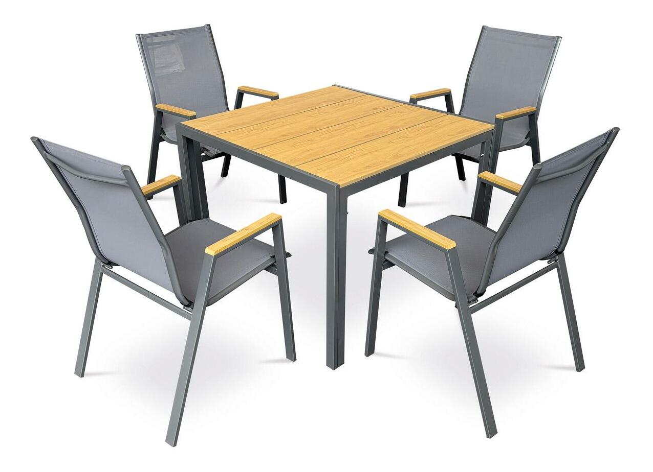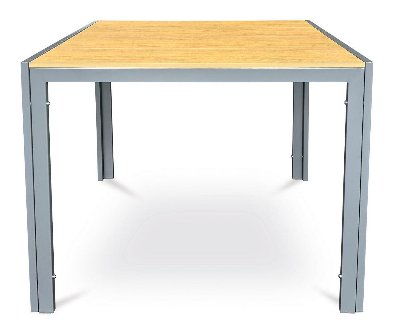 Čtvercový zahradní stůl je skvělým doplňkem pro každé venkovní posezení. Stůl kombinuje elegantní polywood s kovovou konstrukcí v barvách antracitu. Dubový odstín desky dodává přírodní vzhled, který se hodí do jakéhokoli prostředí. Povrch je navíc odolný proti poškrábání, což zaručuje jeho snadnou údržbu. Stabilní čtyřnohé podnoží s práškovou úpravou proti vnějším vlivům činí z tohoto stolu ideální volbu pro zahrady či terasy, kde chcete stylově a pohodlně trávit volný čas.