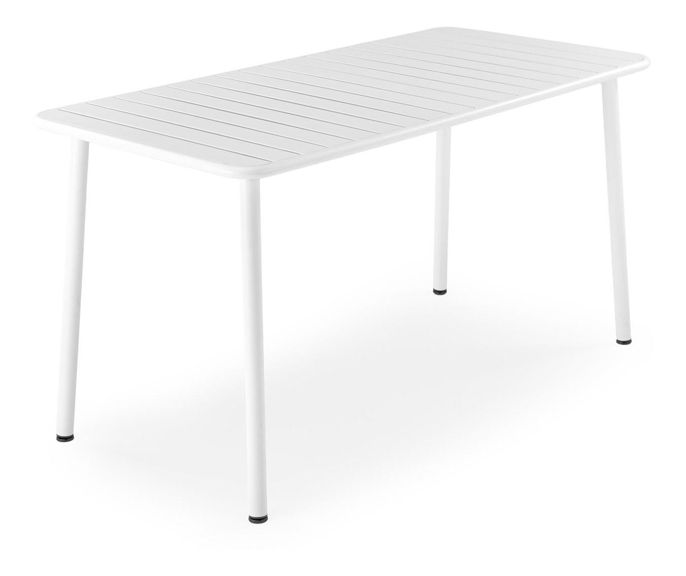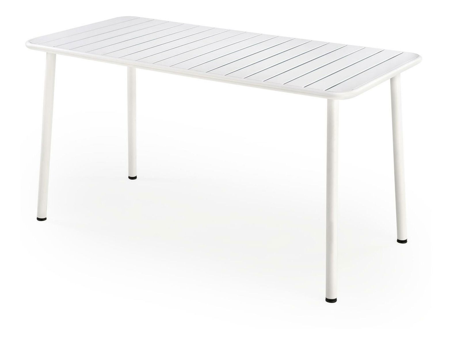 Tento moderní jídelní zahradní stůl představuje ideální kombinaci stylu a praktičnosti. Deska stolu je vyrobena z kovu a je práškově lakována, což zaručuje její dlouhou životnost a snadnou údržbu. Stůl je podepřen čtyřmi kovovými nohama, také práškově lakovanýma, které zajišťují stabilní a pevnou konstrukci. Jeho obdélníkový tvar nabízí dostatek prostoru pro pohodlné stolování. Tento stůl není rozkládací, což z něj činí skvělý kus nábytku pro každodenní použití ve vaší jídelně nebo kuchyni.
