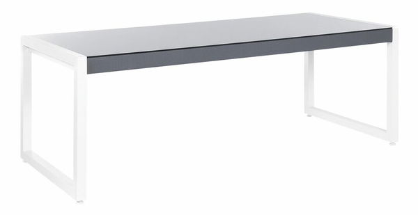Tento moderní zahradní jídelní stůl pro šest osob vytvoří dokonalé místo pro letní rodinná setkání. Stolová deska je vyrobena z textilního vlákna s tvrzeným sklem na vrchu se stylovým lesklým povrchem. Prostorná stolová deska nabízí dostatek místa pro občerstvení a nápoje. Stůl jistě zaujme svým poutavým designem a jednoduchými tvary.