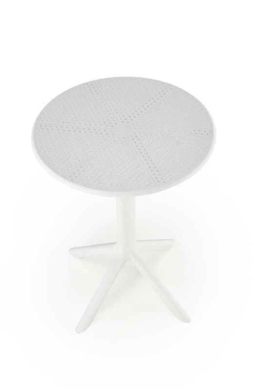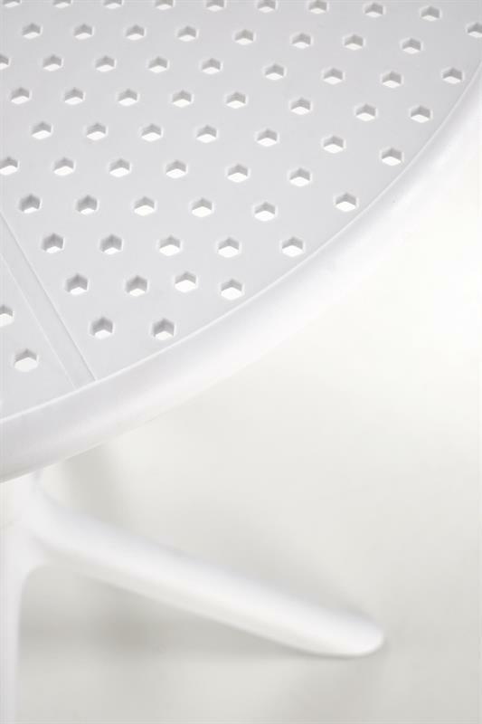 Tento malý, moderní zahradní stolek je ideální volbou pro jednotlivce, který si potrpí na funkčnost a styl. Deska stolu i nohy jsou vyrobeny z polypropylenu, což zajišťuje snadnou údržbu a odolnost vůči poškození. Stůl má jednu centrální nohu, která se rozvětvuje na čtyři stabilní opory, zabezpečující pevnost a rovnováhu. Kulatý tvar stolu optimalizuje prostor, umožňuje snadný přístup z každé strany a zároveň nabízí dostatek plochy pro pohodlné stolování pro jednu osobu. Tento stolek není rozkládací, což jej činí vhodným pro každodenní použití v menších prostorách, jako jsou studia nebo malé kuchyně.