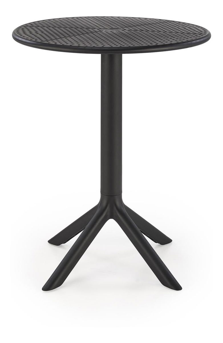 Tento malý, moderní zahradní stolek je ideální volbou pro jednotlivce, který si potrpí na funkčnost a styl. Deska stolu i nohy jsou vyrobeny z polypropylenu, což zajišťuje snadnou údržbu a odolnost vůči poškození. Stůl má jednu centrální nohu, která se rozvětvuje na čtyři stabilní opory, zabezpečující pevnost a rovnováhu. Kulatý tvar stolu optimalizuje prostor, umožňuje snadný přístup z každé strany a zároveň nabízí dostatek plochy pro pohodlné stolování pro jednu osobu. Tento stolek není rozkládací, což jej činí vhodným pro každodenní použití v menších prostorách, jako jsou studia nebo malé kuchyně.