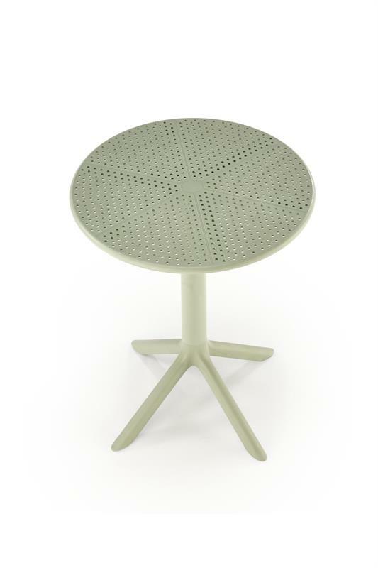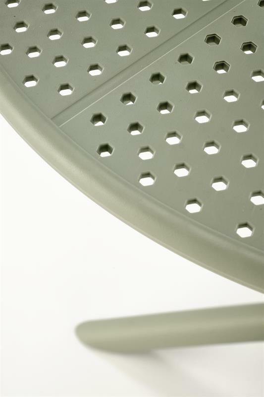 Tento malý, moderní zahradní stolek je ideální volbou pro jednotlivce, který si potrpí na funkčnost a styl. Deska stolu i nohy jsou vyrobeny z polypropylenu, což zajišťuje snadnou údržbu a odolnost vůči poškození. Stůl má jednu centrální nohu, která se rozvětvuje na čtyři stabilní opory, zabezpečující pevnost a rovnováhu. Kulatý tvar stolu optimalizuje prostor, umožňuje snadný přístup z každé strany a zároveň nabízí dostatek plochy pro pohodlné stolování pro jednu osobu. Tento stolek není rozkládací, což jej činí vhodným pro každodenní použití v menších prostorách, jako jsou studia nebo malé kuchyně.