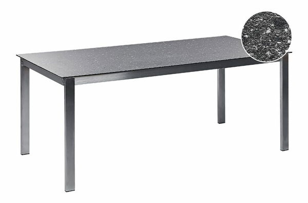 Tento venkovní jídelní stůl se stane moderním a stylovým doplňkem vaší zahrady nebo terasy. Vrchní deska stolu je vyrobena z pevného tvrzeného skla, je elegantní a velmi odolná, díky čemuž se tento stůl stane součástí vašeho venkovního prostoru na dlouhou dobu i bez každodenní údržby. Stříbrný rám vyrobený z nerezavějící oceli poskytuje stabilitu a odolnost vůči vodě, větru a rzi. Prostorná plocha stolové desky nabízí místo ke stolování až pro až 6 osob, což je velmi praktické zejména při pořádání oslav a různých zahradních posezení.