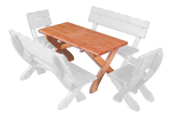 Pěkný zahradní stůl, vyroben z kvalitního smrkového masivu, který vyniká vysokou stabilnosti a životností. Bude se skvěle vyjímat na Vaší zahradě, pod altánem nebo na větší terase. Díky svým rozměrům se k němu pohodlně usadí až šest osob. Je možné si k němu přiobjednat vhodné židle a lavičky.