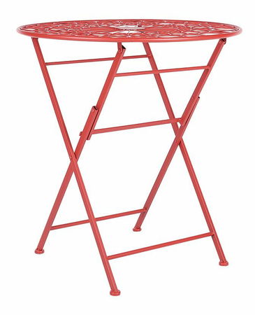 Vytvořte si romantickou atmosféru na svém vlastním balkoně nebo terase s tímto okouzlujícím venkovním stolkem v syté červené barvě. Krásný design inspirovaný provensálským stylem se snoubí s funkčností. Stolek je skládací, díky čemuž je skladný a lze jej použít i v malých venkovních prostorách. Jeho pevná železná konstrukce je odolná, takže stůl vám vydrží léta.