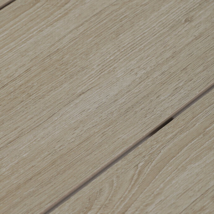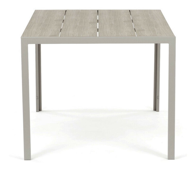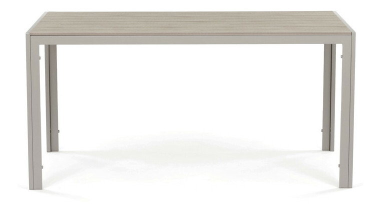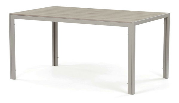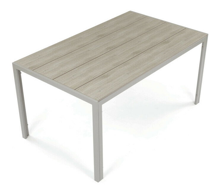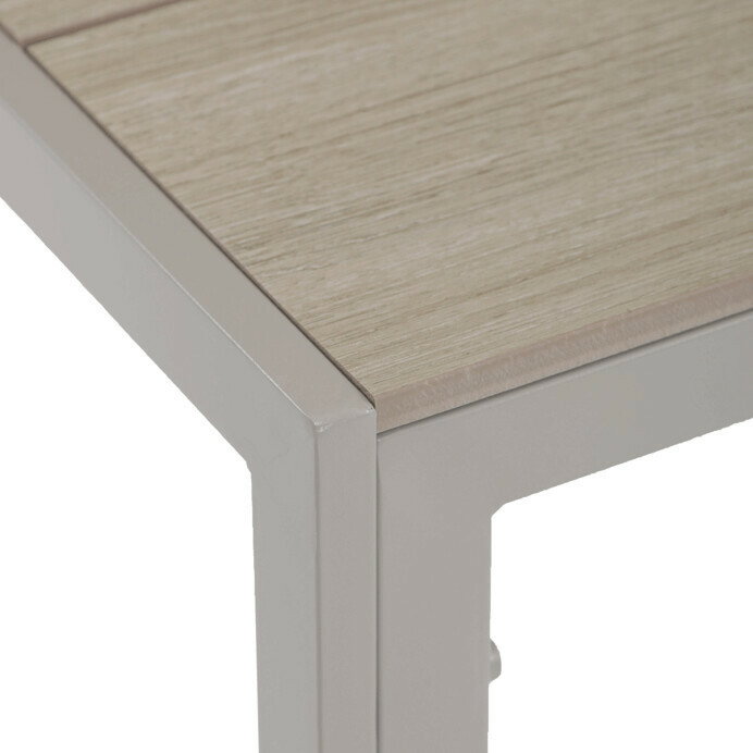 Zahradní stůl o rozměrech 150x89x73 cm kombinuje desku z polywoodu v dekoru dubu s pevným kovovým rámem v krémové barvě cashmere. Deska je navržena tak, aby byla odolná proti poškrábání a snadno se udržovala, což zajišťuje dlouhodobou estetiku i při zevním použití. Kovový rám je opatřen práškovou povrchovou úpravou, která chrání proti povětrnostním vlivům a zvyšuje stabilitu stolu. Jednoduchý a moderní design s rovnýma nohama umožňuje pohodlné usazení až šesti osob. Stůl je vhodný pro zahradní posezení, terasy i balkony, kde poskytuje funkční a stylový prostor pro stolování i odpočinek.