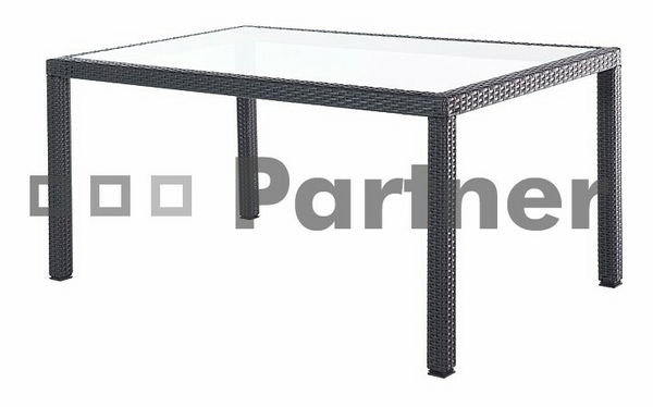 Vysoce praktický a moderní zahradní stůl bude skvělým doplňkem ve Vaší zahradě či na terase. Na pevné a stabilní kovové konstrukci je výplet z umělého ratanu černé barvy. Díky použitému materiálu nemusíte stůl schovávat do interiéru při nepřízni počasí. Konstrukce, včetně výpletu odolává vlivům počasí, povětrnostním podmínkám, vodě i UV záření. Údržba je velmi jednoduchá. Stačí mokrý hadřík nebo houbička a nábytek je opět jako nový. Vrchní deska stolu je z 5 mm silného,tvrzeného čirého skla.
