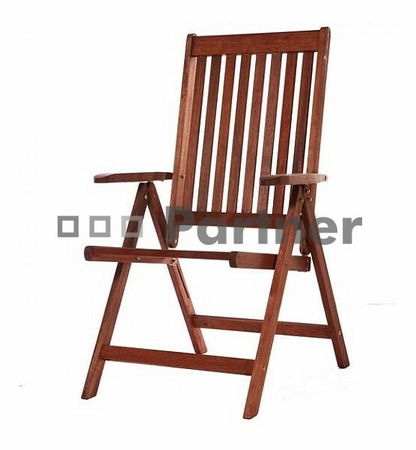 Dřevěná židle s područkami vhodná do zahrady, na balkon nebo terasu. Nadzvednutím područek si můžete nastavit opěradlo do jedné z pěti poloh.