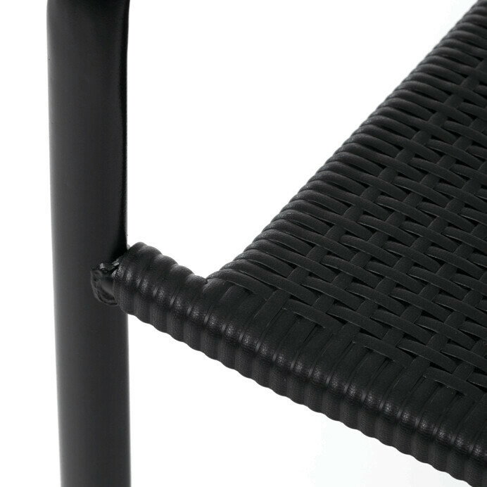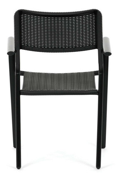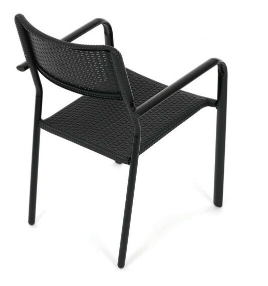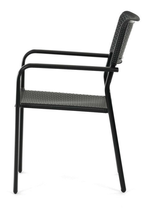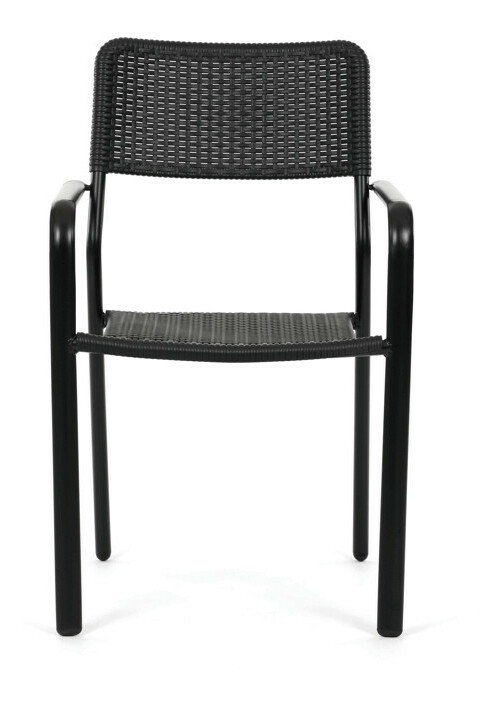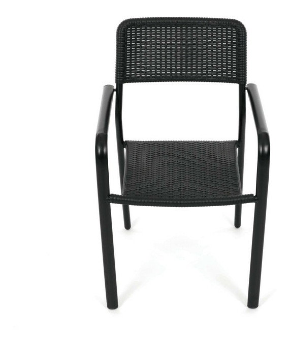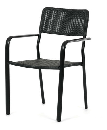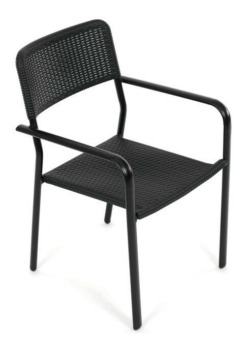 Zahradní židle v černém provedení kombinuje pevný kovový rám s odolným plastovým sedákem a opěradlem, které jsou navrženy pro dlouhou životnost a snadnou údržbu. Díky stohovatelnému designu umožňuje efektivní skladování a úsporu místa. Područky zajišťují pohodlné opření rukou během sezení. Jednoduchý a praktický tvar židle se hodí do různých venkovních prostor, jako jsou terasy, zahrady nebo balkony.