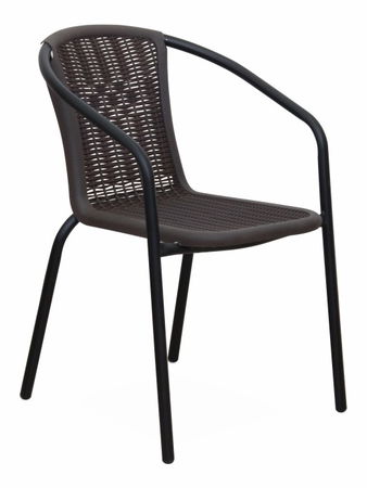 Praktickou stohovatelnou židli s moderním vzhledem snadno využijete v jakémkoliv prostoru. Tato židle je osvěžující změnou do zahrady nebo na terasu. Sedací a opěrná část je z tmavě hnědého plastu, pevná a stabilní konstrukce je z černého kovu.