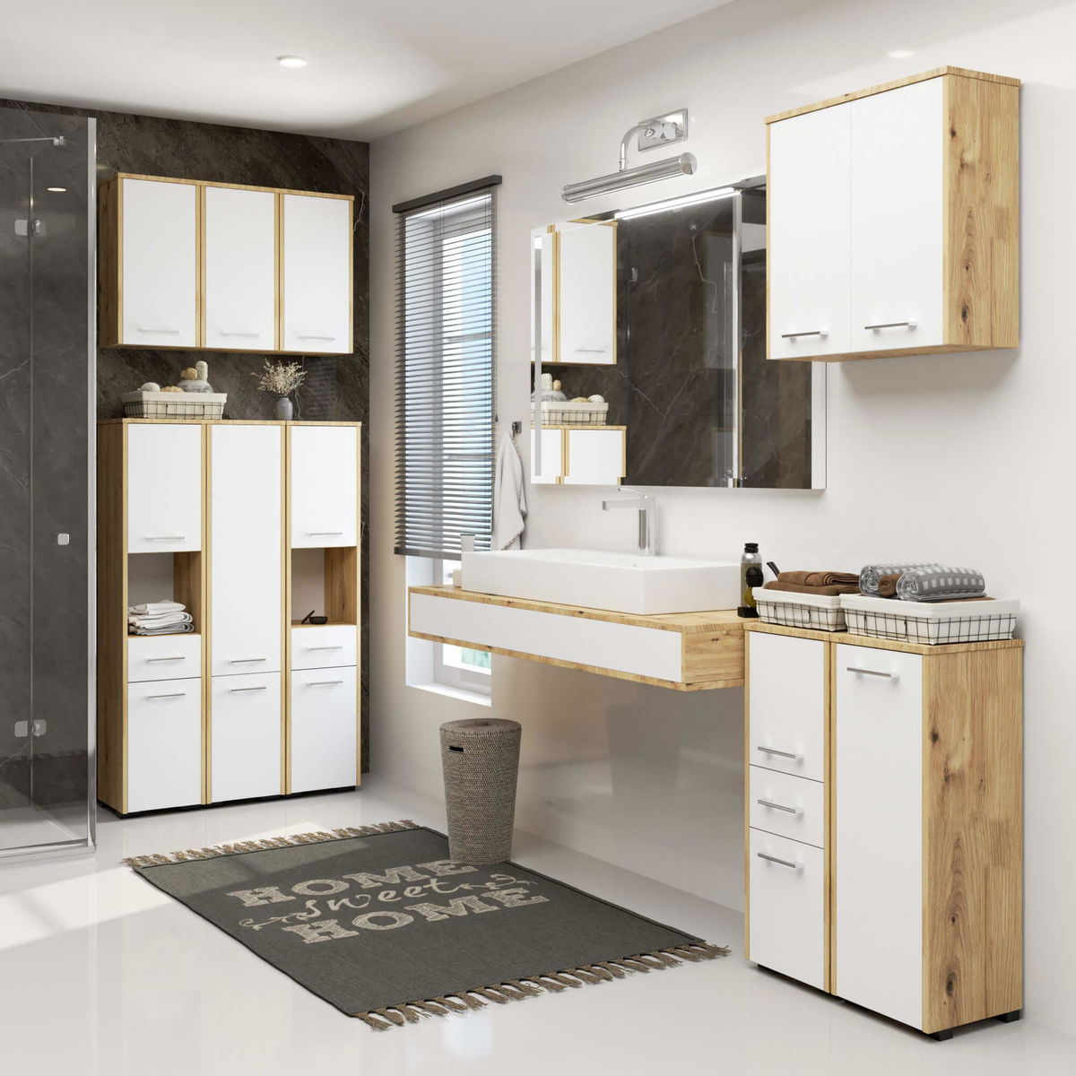 Závěsná koupelnová skříňka Farid TYP 7 (dub artisan + bílá)