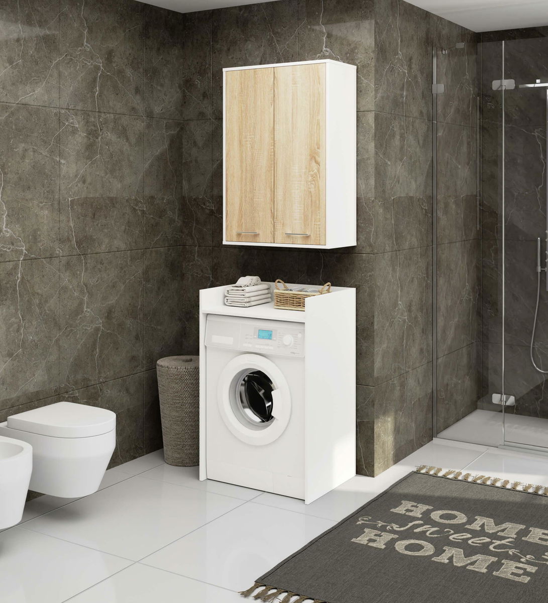 Závěsná koupelnová skříňka Farid TYP 8 (bílá + dub sonoma)