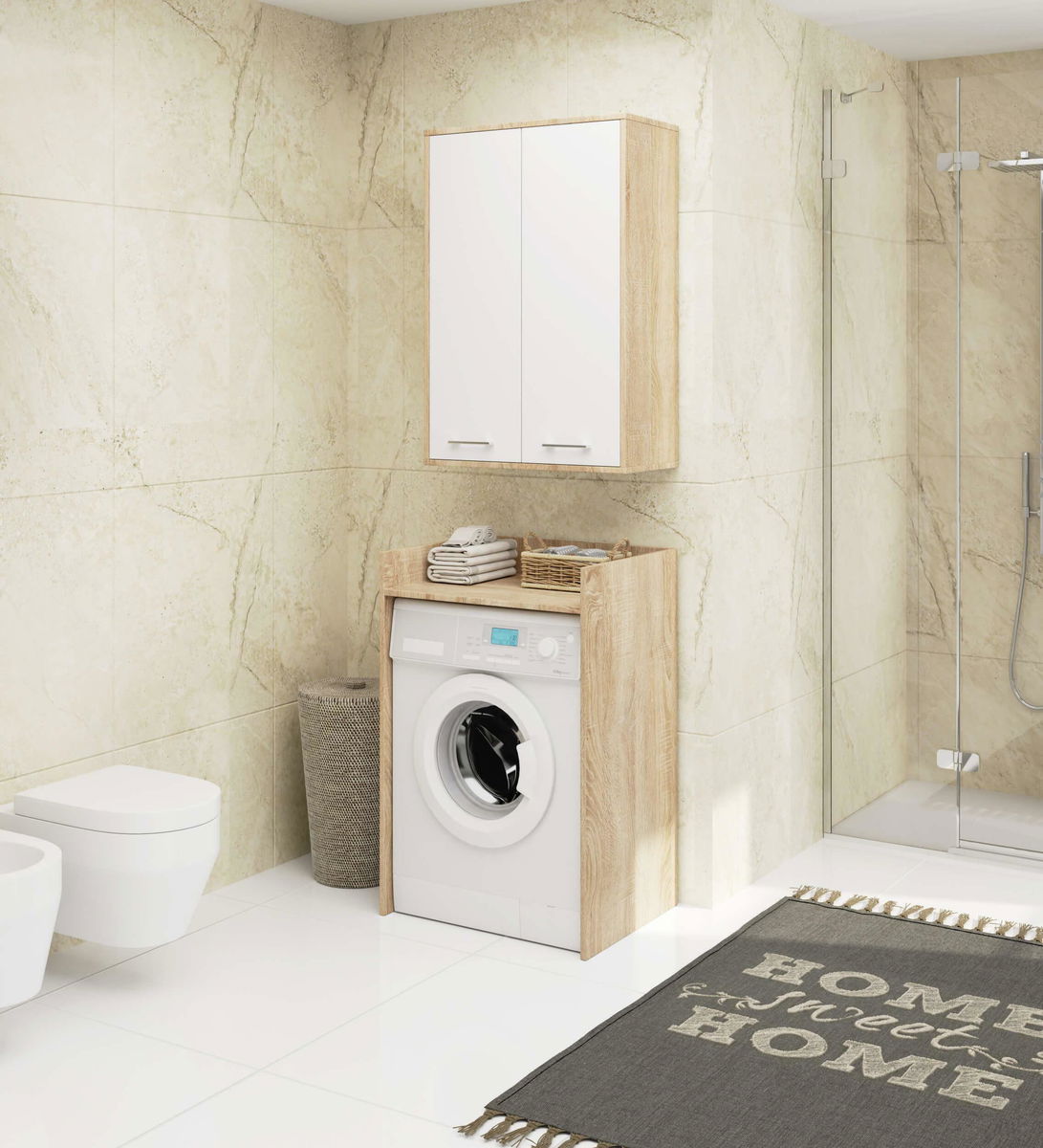Závěsná koupelnová skříňka Farid TYP 8 (dub sonoma + bílá)