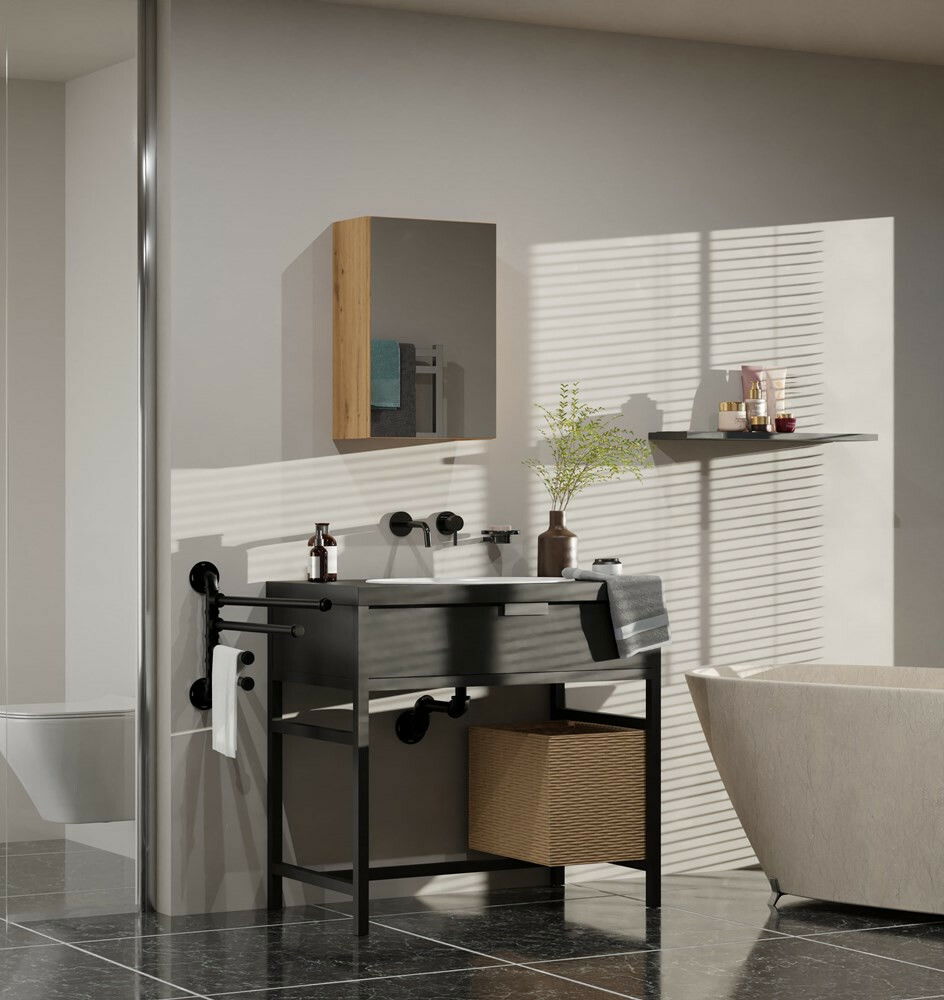 Závěsná koupelnová skříňka Perdieron 3 (dub artisan) (se zrcadlem)