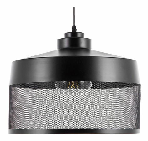 Stropní svítidlo ve tvaru válce v moderním designu, které zapadne do vaší domácnosti i kanceláře. Je vyrobeno z odolného kovu v černé barvě, má hladkou horní část a drátěnou síťovanou spodní část. Svítilna se hodí do moderního, industriálního nebo vintage interiéru a každou místnost naplní příjemným světlem.