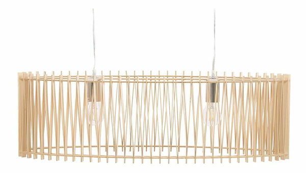 Zvýrazněte svůj jídelní nebo obývací prostor pomocí této ambientní závěsné lampy. Je vybavena dvěma žárovkami a efektním stínítkem, díky čemuž osvětluje místnost jasným a silným světlem. Lampa je vyrobena z MDF materiálu, který vypadá jako skutečné dřevo, snadno se udržuje a je odolná.