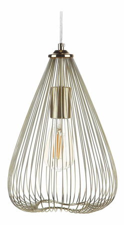 Design této nádherné závěsné lampy byl inspirován industriálním stylem. Má zlaté kovové stínítko ve tvaru podlouhlé klece a vyzařuje příjemné okolní osvětlení. Díky otevřené konstrukci působí mimořádně elegantně a krásně vynikne v kombinaci s výraznou žárovkou. Toto stylové a funkční svítidlo bez problémů oživí vzhled jakékoli místnosti.