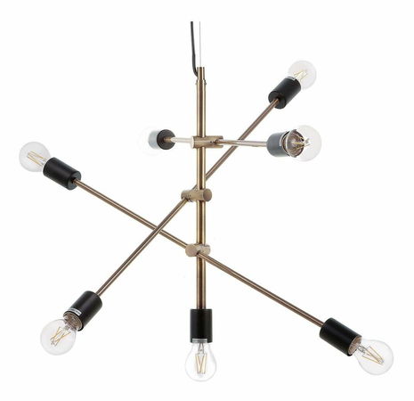 Toto moderní ambientní stropní svítidlo spojuje průmyslový design s hravým stylem. Díky 7 nastavitelným světlům můžete lampu plně přizpůsobit interiéru i svým potřebám – světla můžete například seřadit do jedné linie, čímž získáte jednoduchou geometrickou kompozici, nebo naopak můžete zapojit fantazii a vytvořit jedinečný design přesně podle svého vkusu. Povrchová úprava z kartáčovaného kovu v tmavé mosazné barvě se postará o odvážný prvek v každém obývacím pokoji, jídelně nebo ložnici, zatímco odhalené žárovky naplní místnost jasným a příjemným světlem.