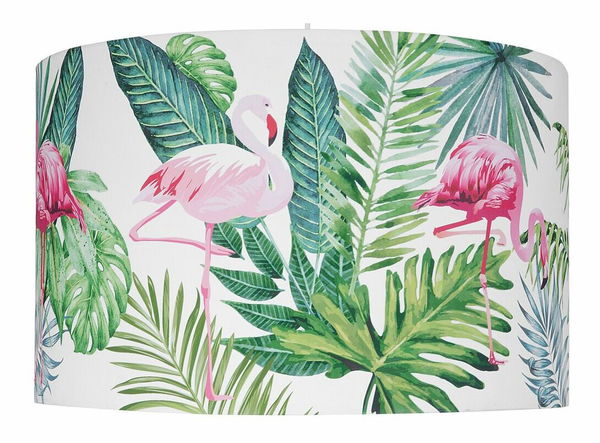 Toto moderní závěsné svítidlo se stane jedinečným doplňkem dětského pokoje, ložnice teenagerů nebo jakéhokoli jiného obytného prostoru. Moderní vzor džungle na bílém pozadí je zvýrazněn růžovými plameňáky, zatímco konstrukce ve tvaru bubnu z textilní látky umožňuje rozptýlení světla po místnosti pro vytvoření příjemného prostředí. Tato lampa je perfektní volbou pro všechny, kdo chtějí vnést do svého interiéru módní design.