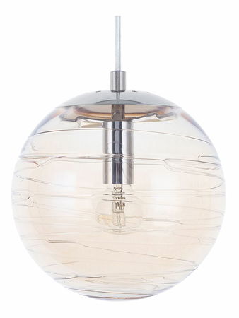 Tato výrazná závěsná ambientní lampa zmodernizuje vzhled jakéhokoli interiéru. Lampa má skleněné kulovité stínítko v jemném zlatém odstínu, které dokonale doplní vaši jídelnu, kuchyni nebo ložnici. Vnitřní část stínítka zdobí nepravidelně tvarované víry, které vytváří jedinečný světelný efekt. Lampa se hodí do mnoha interiérů – od industriálních až po vintage nebo moderní. Svítilna nádherně vynikne nad jídelním stolem nebo ve středu místnosti, kterou nejen zútulní, ale také naplní příjemným světlem.