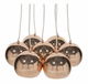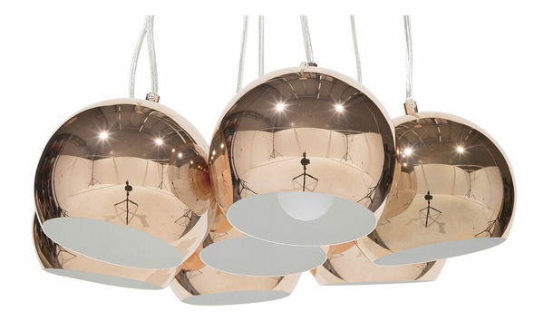 Moderní a stylová lampa, která se skládá ze 7 kulatých stínidel, která jsou navzájem seskupena. Jednotlivá stínítka v měděné barvě krásně ladí s kabelem, který je jejich součástí. Tato nádherná lampa, která už na první pohled upoutá pozornost, se stane skutečným středem každého interiéru, ať už jde o obývací pokoj nebo kuchyni. Svítilna poskytuje jemné okolní osvětlení, díky kterému bude váš domov působit hřejivě a příjemně.