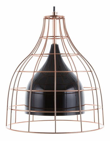 Toto stropní svítidlo, moderní aktualizace vintage stylu, je doplňkovým prvkem pro průmyslové interiéry i výrazným prvkem pro tradiční obytné prostory. Lampa se dodává se dvěma stínítky, menším s černým matným povrchem umístěným uvnitř kovové klece. Díky svému zvonovitému tvaru vrhá soustředěné a příjemné světlo.