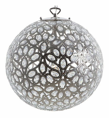 Elegantní ambientní závěsné svítidlo, které dodá pocit tepla do každého obývacího pokoje nebo ložnice. Je krásně navržen z lesklého kovu a je osazen více krystaly a vyznačuje se orientálním květinovým vzorem. Toto svítidlo je elegantním dekorativním prvkem pro moderní, vintage nebo tradiční interiér.
