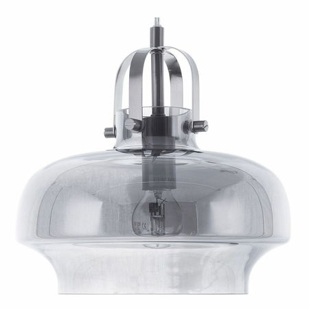 Vneste s touto jedinečnou stropní lampou do vašeho interiéru originální atmosféru. Vyznačuje se krásným kouřovým skleněným stínítkem v antickém stylu, které dokonale podtrhuje stříbrný kovový rám. Svítilna je díky svému poloprůhlednému materiálu skvělým prvkem do každé kuchyně, jídelny nebo obývacího pokoje a činí interiér zářivým a živým. Přidejte designovou žárovku pro doplnění celkového vzhledu a vychutnejte si teplé bodové světlo v podobě této odvážně navržené lampy.